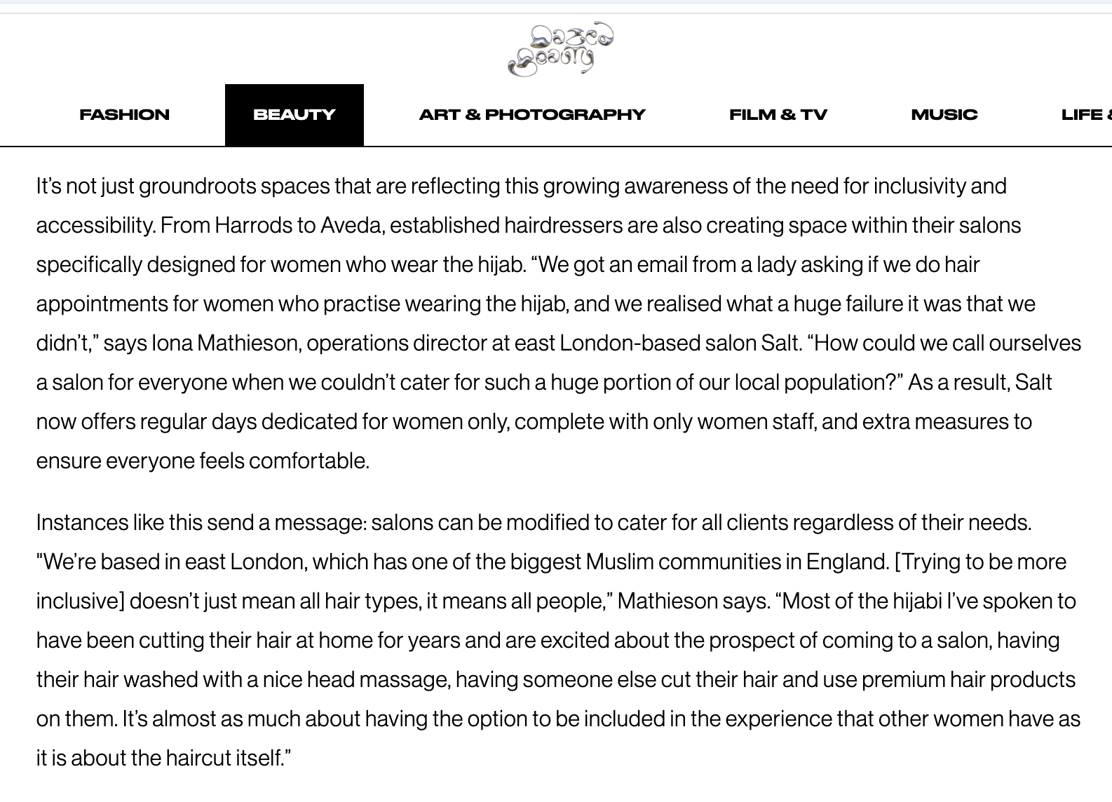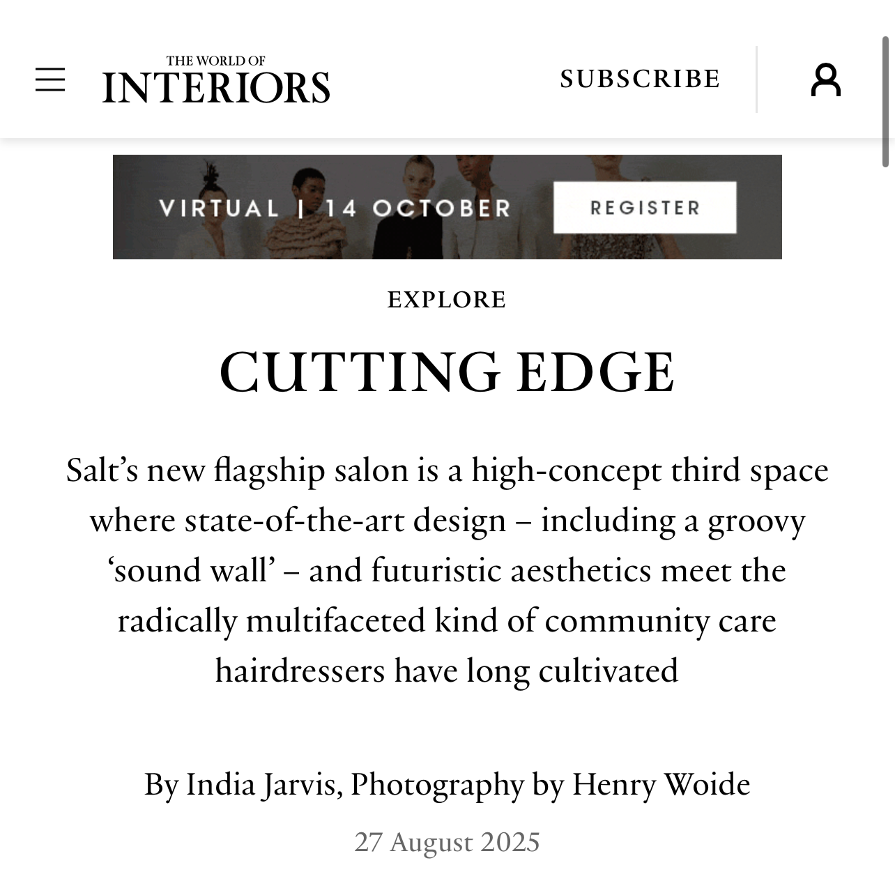 SALT Salon is a London based contemporary, luxury hairdressing salon group like no other. Named by The Face Magazine as “The Future Of London’s Cult Hair Salons”.