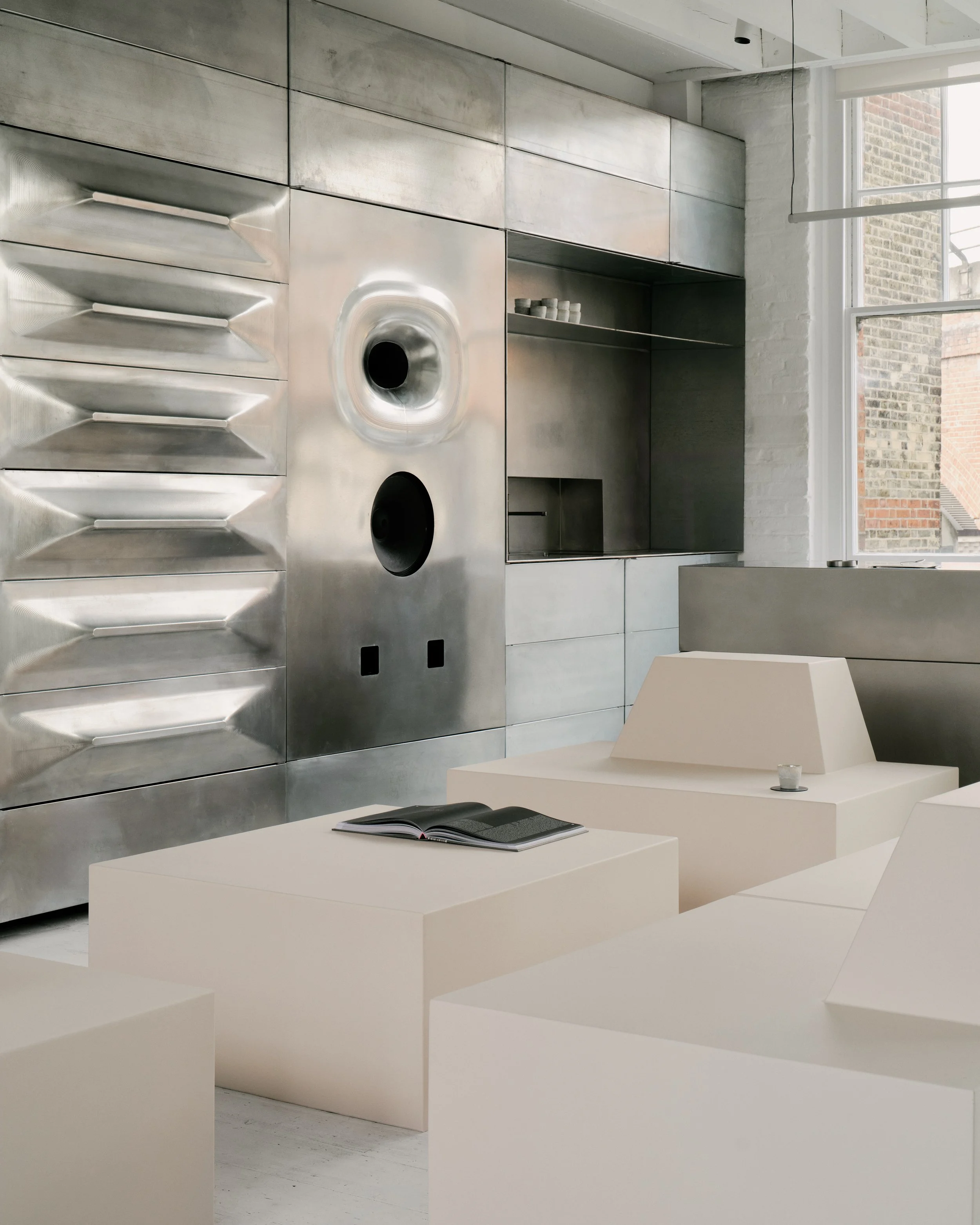 A truly private space with light beaming in from every side, our Hackney space boasts a long concrete natural wine bar, Martin Audio sound system and private roof terrace.